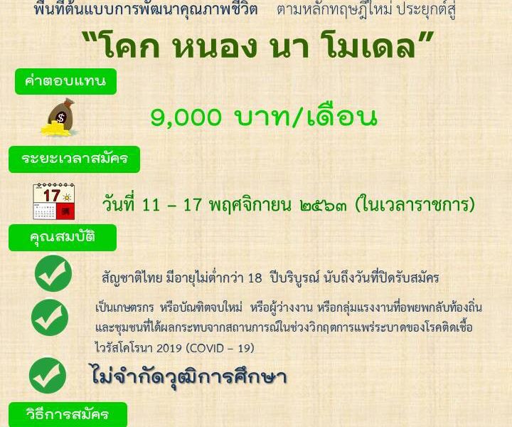 รมการพัฒนาชุมชน รับสมัครลูกจ้างเหมาบริการ ปฏิบัติภารกิจตามโครงการพัฒนาพื้นที่ต้นแบบการพัฒนาคุณภาพชีวิตตามหลักทฤษฏีใหม่ ประยุกต์สู่ “โคก หนองนา โมเดล”