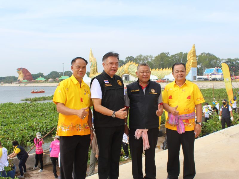 พจ.ยโสธร ร่วมกิจกรรมสิงห์อาสาสู้น้ำท่วมปรับภูมิทัศน์ แหล่งท่องเที่ยว(กิจกรรมเก็บผักตบชวา)
