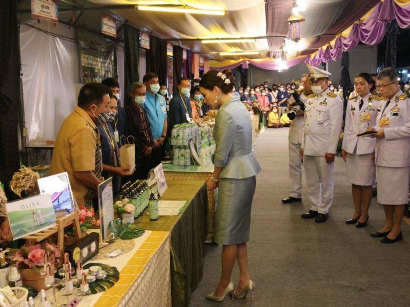 พระราชินี เสด็จฯ เยี่ยม และทอดพระเนตรผลิตภัณฑ์สินค้า OTOP ในโอกาสเสด็จพระราชดำเนินไปทรงปฏิบัติพระราชกรณียกิจในพื้นที่จังหวัดสกลนคร