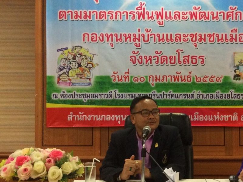 พช.ยโสธร เคลื่อนทัพเพื่อขับเคลื่อนยุทธศาสตร์พลังแผ่นดินเอาชนะยาเสพติดฯ ร่วมกับเครือข่ายกองทุนแม่ของแผ่นดินระดับอำเภอ ดำเนินกิจกรรมตามโครงการตรวจสุขภาพกองทุนแม่ของแผ่นดิน ประจำปี 2559