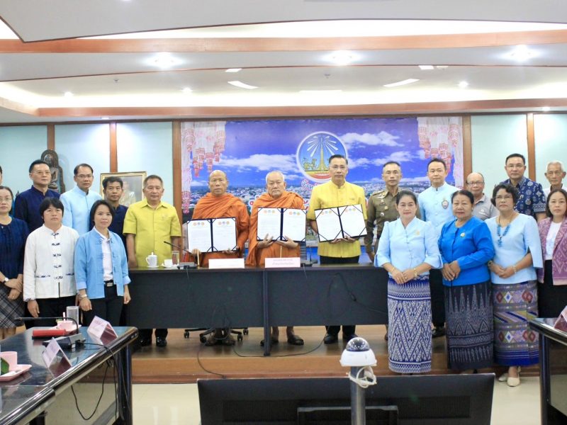 พช.ยโสธรร่วมกิจกรรม MOU ความร่วมมือบทบาทในการเกื้อหนุนระหว่างวัดและชุมชนให้มีความสุขอย่างยั่งยืน จังหวัดยโสธร