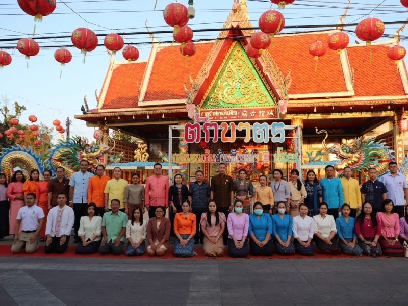 พช.ยโสธรร่วมทำบุญตักบาตรย้อนยุค วิถีถิ่น วิถีไทย ถนนคนเดินยโสธร เมืองเก่าบ้านสิงห์ท่า และร่วมกันสวมใส่ผ้าไทยตามโครงการ “ผ้าไทยใส่ให้สนุก