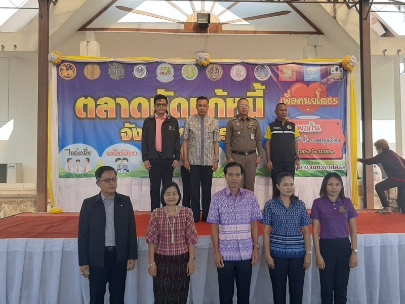 พช.ยโสธร ร่วมพิธีเปิดกิจกรรมตลาดนัดแก้หนี้
