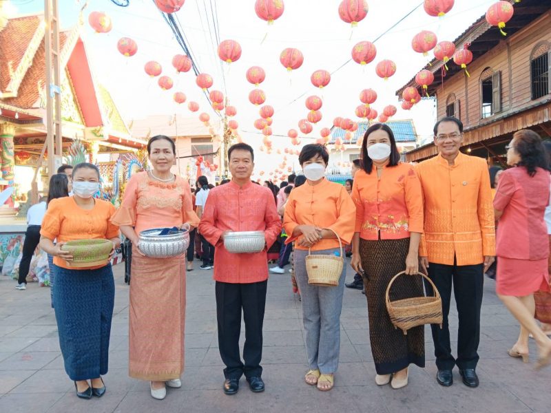 พช.ยโสธรร่วมทำบุญตักบาตรย้อนยุค วิถีถิ่น วิถีไทย ถนนคนเดินยโสธร เมืองเก่าบ้านสิงห์ท่า และร่วมกันสวมใส่ผ้าไทยตามโครงการ“ผ้าไทยใส่ให้สนุก”