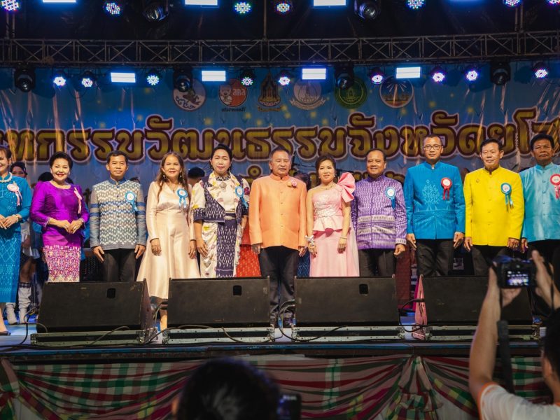 พช.ยโสธร ชู Soft Power OTOP Yasothon ด้วยผลิตภัณฑ์กระเช้าสินค้า OTOP ในงานเดินแบบชุดผ้าไทยในงานมหกรรมวัฒนธรรม จังหวัดยโสธร