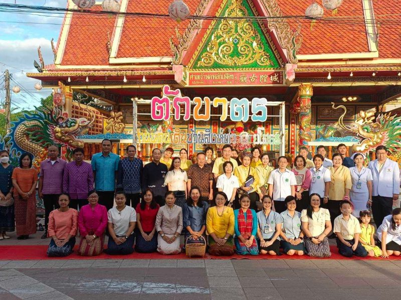 พช.ยโสธร ร่วมทำบุญตักบาตรย้อนยุค วิถีถิ่น วิถีไทย ถนนคนเดินยโสธร เมืองเก่าบ้านสิงห์ท่า และร่วมกันสวมใส่ผ้าไทยตามโครงการ “ผ้าไทยใส่ให้สนุก”