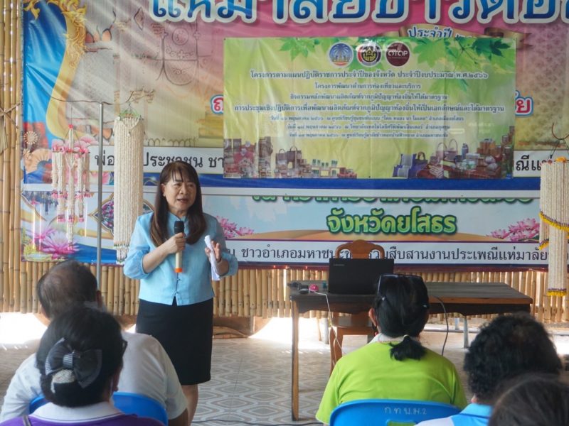 พช.ยโสธร ติดตามการดำเนินกิจกรรมยกระดับการพัฒนาผลิตภัณฑ์จากภูมิปัญญาท้องถิ่นให้เป็นเอกลักษณ์และได้มาตรฐาน รุ่นที่ 3 ณ ศูนย์เรียนรู้มาลัยข้าวตอกบ้านฟ้าหยาด หมู่ 2 ตำบลฟ้าหยาด อำเภอมหาชนะชัย จังหวัดยโสธร