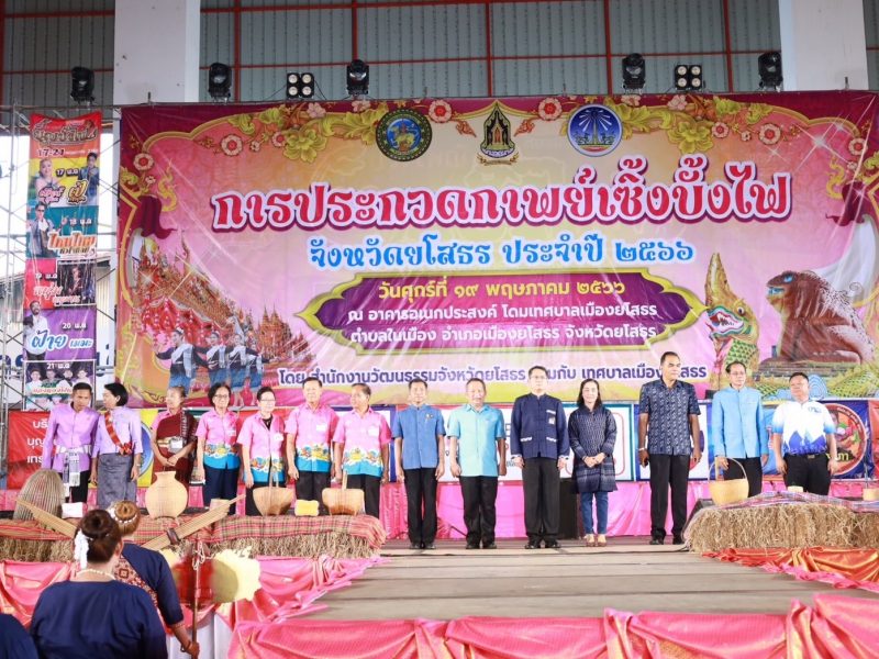พช.ยโสธร ร่วมให้กำลังใจอำเภอที่เข้าร่วมการประกวดกาพย์เซิ้งบั้งไฟ ในงานประเพณีบุญบั้งไฟจังหวัดยโสธร ประจำปี 2566