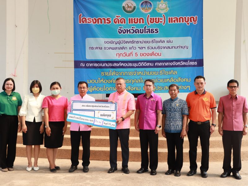 พช.ยโสธร ร่วมกิจกรรม รับซื้อขยะรีไซเคิล ตามโครงการ คัดแยก (ขยะ) แลกบุญ เพื่อลดปัญหาขยะ ลดก๊าซเรือนกระจก และยังได้ร่วมทำบุญในกิจกรรมสาธารณกุศล